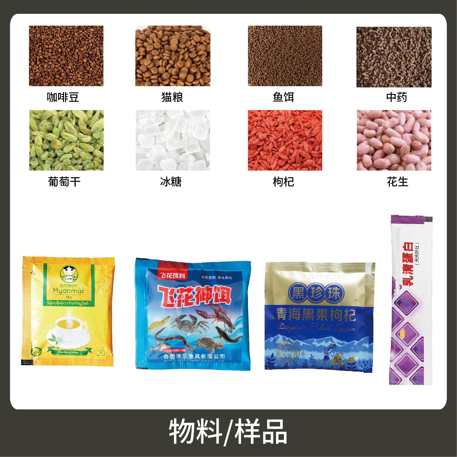 適用于食品、醫(yī)藥、化工、化妝品行業(yè)中顆粒、粉劑、液體、醬料等物品的計量包裝,如:干果、種子、辣椒面、咖啡粉、谷物粉、辣椒油、牛奶等。