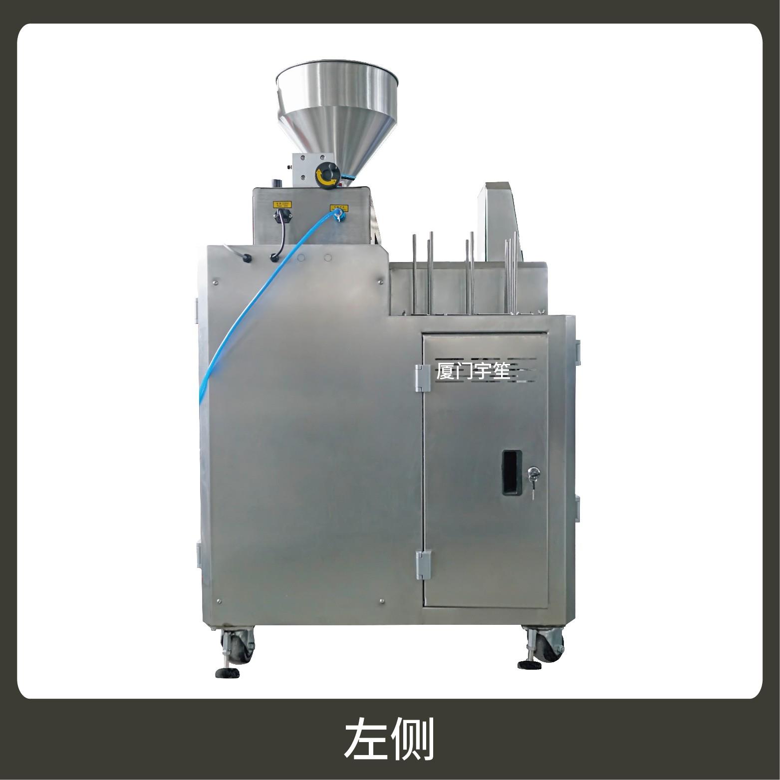 2、調試方便、占用空間小。包裝流程全自動,無需人工操作。可根據充填物料的性質選配不同的下料結構。