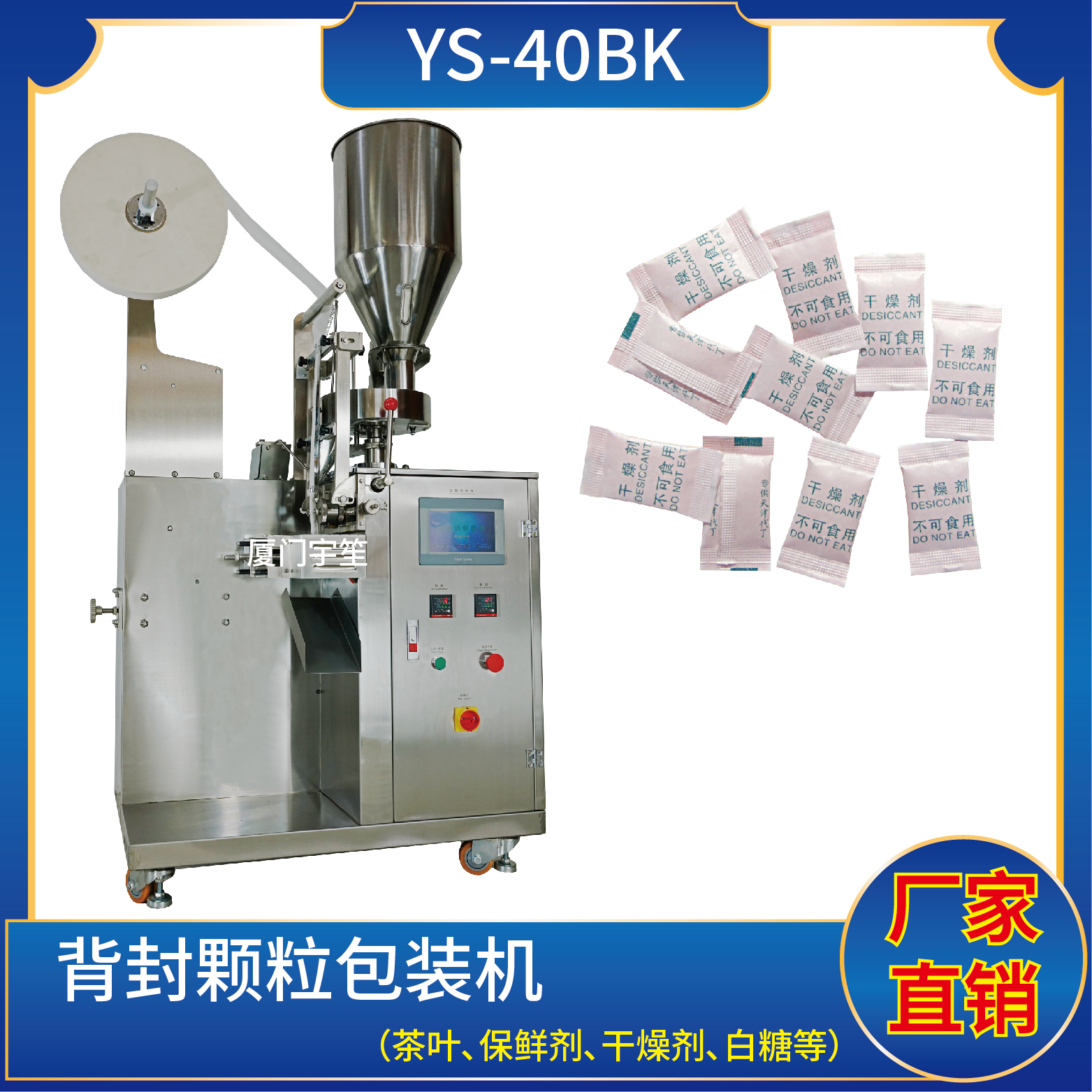 適用于方便面行業(yè)湯包,干燥劑,沖劑,碎茶等小顆粒狀物品包裝。